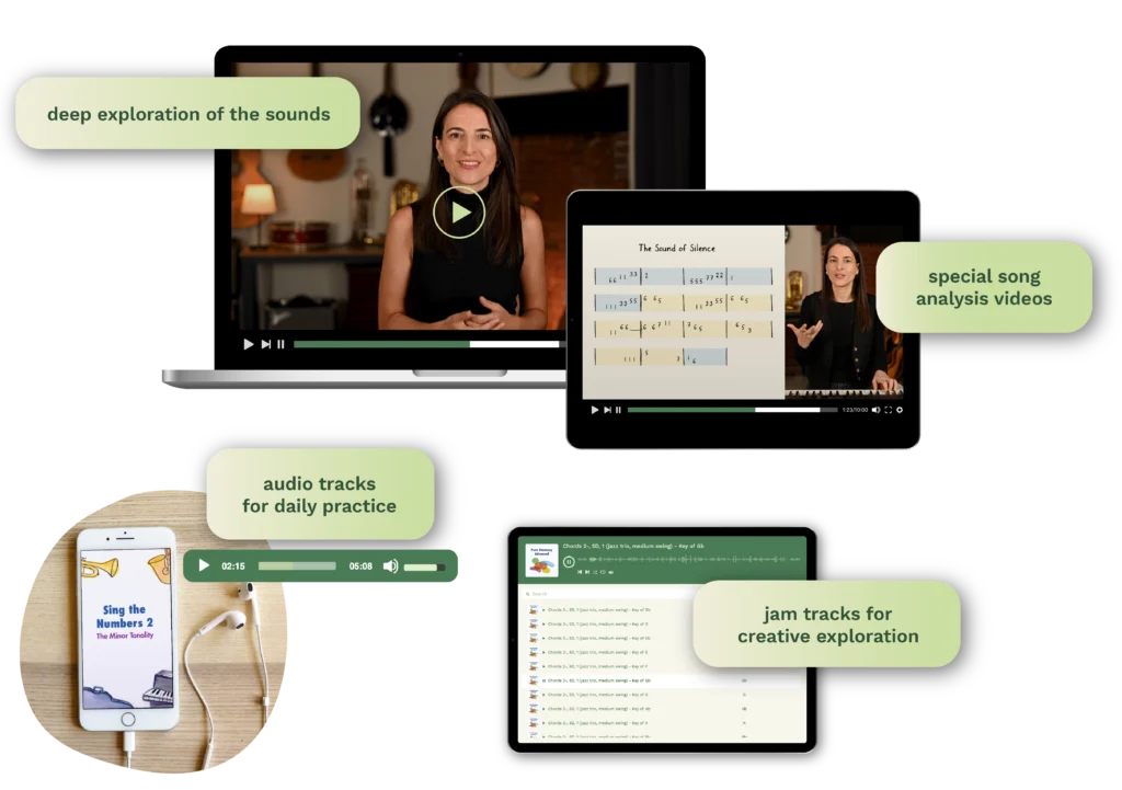 Complete multimedia video courses with singalong tracks, creative exercises and all the resources you need to understand music deeply and learn to recognize it by ear