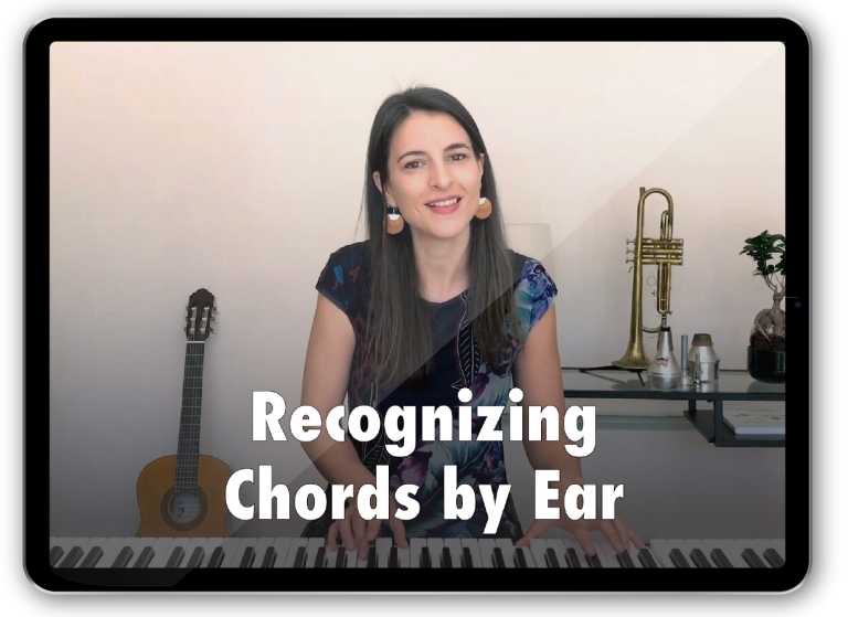 This is exactly what you will learn in this course. Through step-by-step video lessons, audio practice tracks, jamming exercises and self-tests, you’ll learn to recognize the most important chords in popular music by ear. You’ll also learn a process that will enable you to keep growing in this ability for the rest of your life.