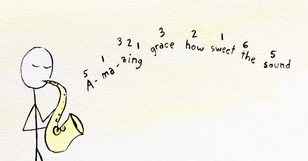 So instead of thinking about the first two notes of Amazing Grace as merely an interval jump of a perfect fourth, we need to focus on exactly WHICH notes these are. In the case of Amazing Grace these first two notes are note 5 and note 1. The entire first line of the melody, expressed in tonal numbers, would be something like this: